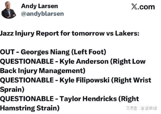 湖人戰(zhàn)爵士形勢(shì)大好,官方預(yù)測(cè)勝率近9成,對(duì)手五將可能缺陣 -
