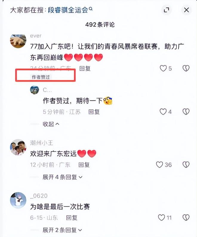 四川男籃瀕臨解散一事是最近中國籃壇最熱門的話題。此前八一男籃解散,其他球隊都分一杯羹,廣東則毫無收獲。這次四川男籃面臨退出CBA的危機,朱芳雨終于重拳出擊!有媒體報道,朱芳雨已經(jīng)拿下了外援薩姆納的簽約權(quán),目前在談國青核心段睿騏。值得一提的是,段睿騏對加盟廣東非常感興趣,在個人社交媒體上點贊了自己加盟宏遠的動態(tài)。有球迷(超人不會飛icon)曬出小段身穿宏遠球衣的效果圖,段騏睿對此很滿意,也是親自點贊!其實之前薩姆納也自宣加盟廣東,與小段同樣的操作,沒有大張旗鼓,而是默默點贊!