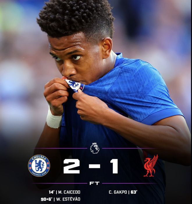 雷速體育10月5日訊 剛剛結(jié)束的英超第七輪的焦點戰(zhàn)中,切爾西2-1戰(zhàn)勝利物浦。比賽上半場凱塞多遠(yuǎn)射幫助藍(lán)軍首開紀(jì)錄。下半場加克波接伊薩克助攻幫助利物浦扳平。比賽補時階段,切爾西替補上場的埃斯特旺絕殺利物浦,送利物浦三連敗。