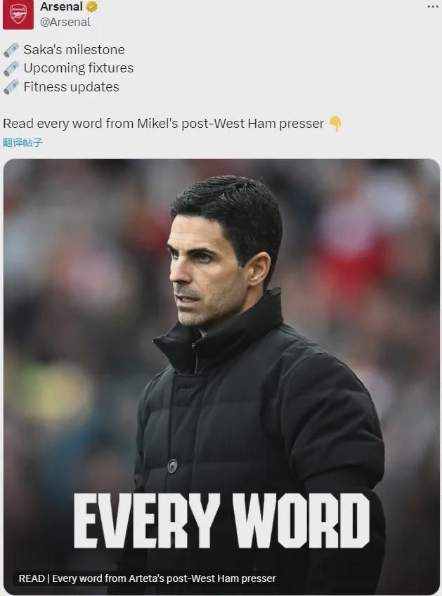 波瀾不驚主場順利拿下西漢姆,沒有重蹈最近幾個賽季主場面對鐵錘時有翻車的覆轍,這樣#阿森納#順利沖到了榜首!