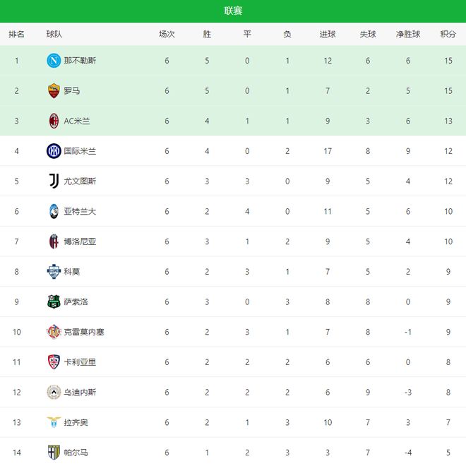 新賽季的歐洲五大聯(lián)賽,當屬意甲亂之又亂,歸屬最終原因是多支球隊正在崛起,其中紅狼羅馬表現(xiàn)最為強勁,有了回歸歐洲一流強隊的趨勢,昨夜今晨第6輪進行了多場激戰(zhàn)后,排名第1-10僅僅只差5分。率先出戰(zhàn)的羅馬2-1逆轉(zhuǎn)佛羅倫薩,首次登上積分榜首位;隨后那不勒斯同樣以逆轉(zhuǎn)的方式2-1擊敗熱那亞,并以凈勝球的微弱優(yōu)勢反超登頂積分榜;AC米蘭與尤文圖斯0-0踢平,近兩個賽季大黑馬博洛尼亞主場4-0大勝比薩,狀態(tài)有所回暖。