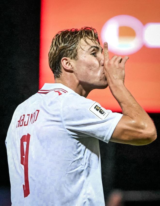 在結(jié)束不久的世界杯歐洲區(qū)預(yù)選賽中,丹麥6-0血洗白俄羅斯。比賽開場僅19分鐘,霍伊倫就鬼魅般出現(xiàn)在小禁區(qū)前,機(jī)敏搶點(diǎn)破門;上半場結(jié)束前,他又在門前補(bǔ)射得手。兩球在手后,他還送出一次漂亮助攻,幫助前曼聯(lián)隊(duì)友帕特里克·多古破門,完成梅開二度+助攻的完美一役。