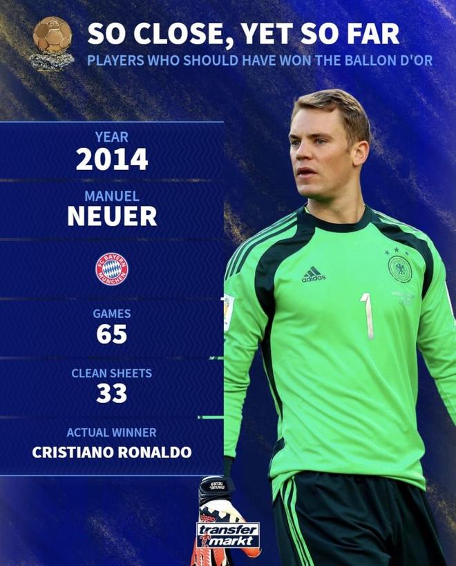 三冠王+歐冠金靴+賽季71球貢獻(xiàn),當(dāng)年金球獎卻直接取消;若正常評選幾乎無懸念。唯一“零對手+被制度傷到”的案例,最冤無爭議。