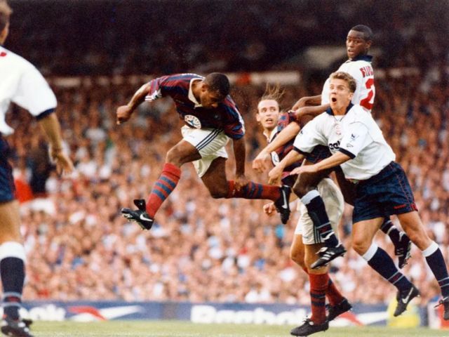 接下來的幾個賽季,萊斯·費迪南德漸漸適應(yīng)了英格蘭頂級聯(lián)賽的比賽節(jié)奏,表現(xiàn)越來越好。等到1992—93賽季的時候,26歲的萊斯·費迪南德火力全開,整個賽季下來取得20粒聯(lián)賽進球,斬獲英超銀靴。他腳風最順的時候,甚至連續(xù)兩輪上演帽子戲法。