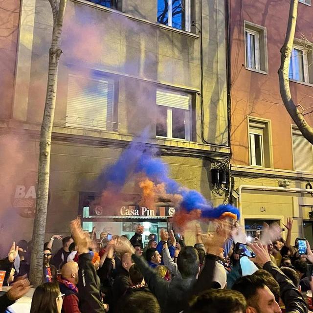 我們來到另一片區(qū)域——Riera Blanca街。這是一條連接巴塞羅那與臨近城市的重要街道,曾經(jīng)是一條通往自由貿(mào)易區(qū)的天然水道,如今則是比賽日最為熱鬧的街區(qū)之一。